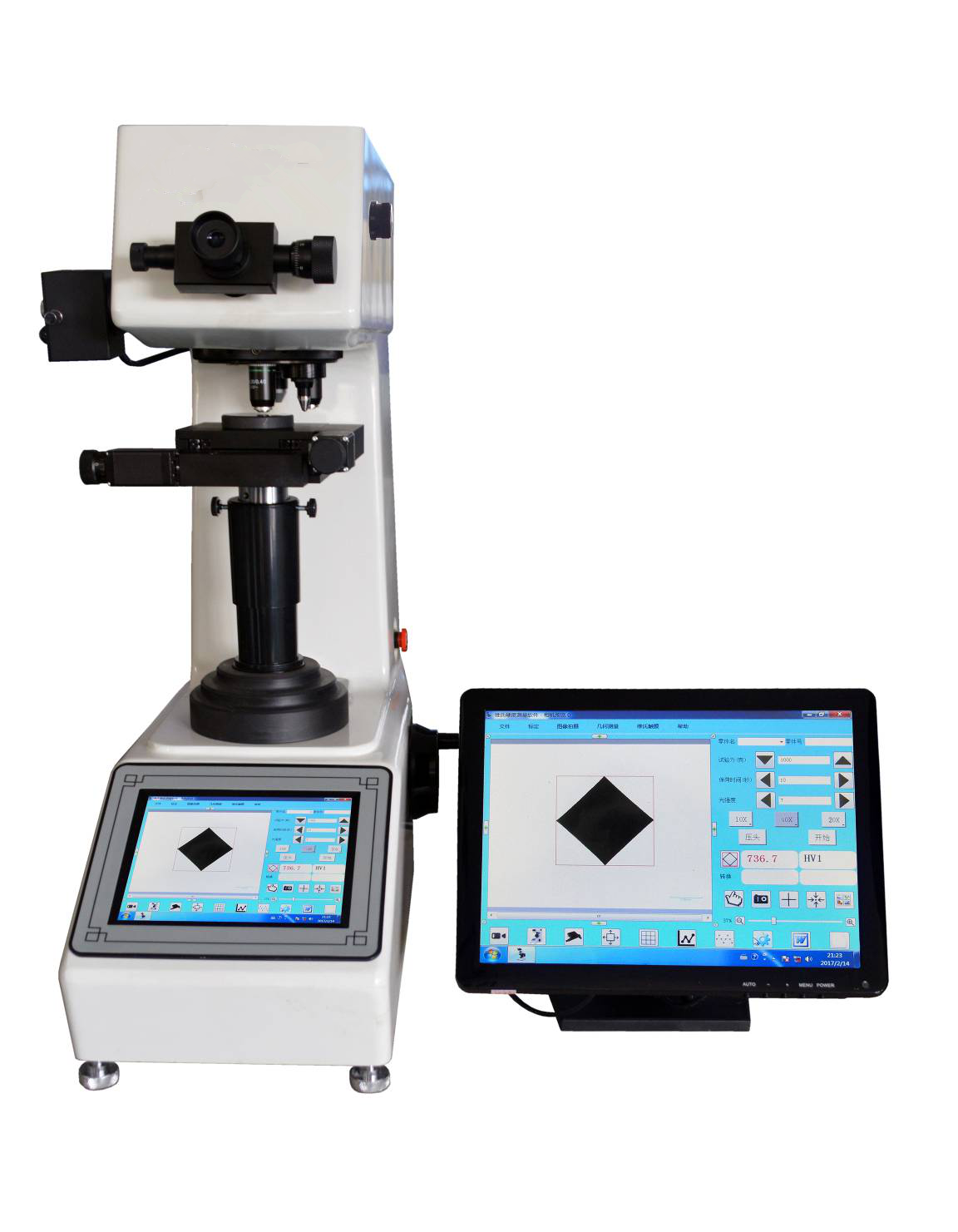 內置CCD圖像采集系統,壓痕顯示清晰直觀,只需觸摸按鍵即可讀取硬度值